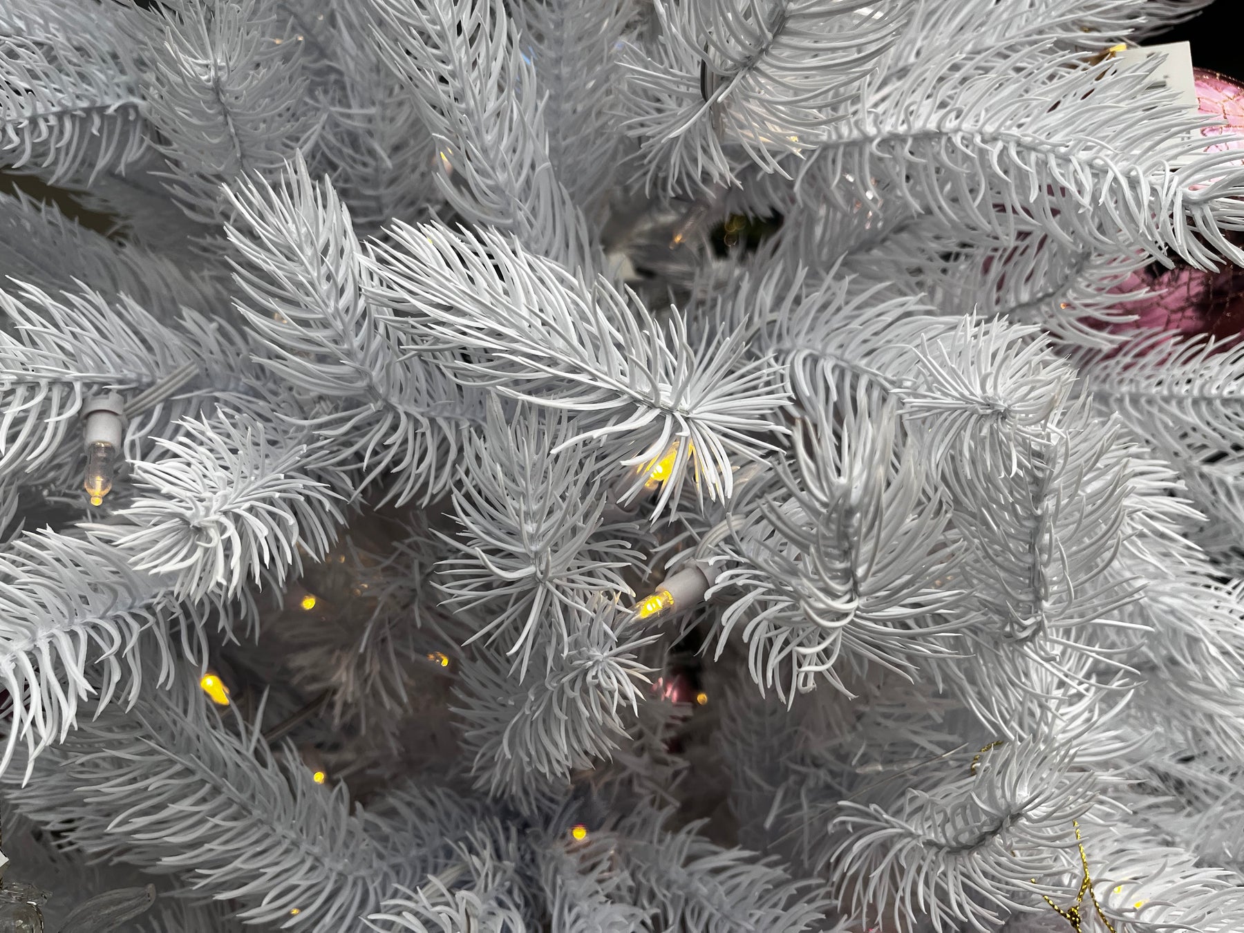 7.5' Alberta Slim Pre-Lit Artificial Christmas Tree, showing close-up of foliage with clear lights.